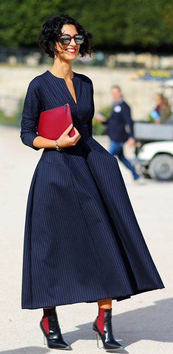 שמלה אלגנטית בצבע אחיד- תיק אדום ונגיעה של צבע בנעל (pinterest)