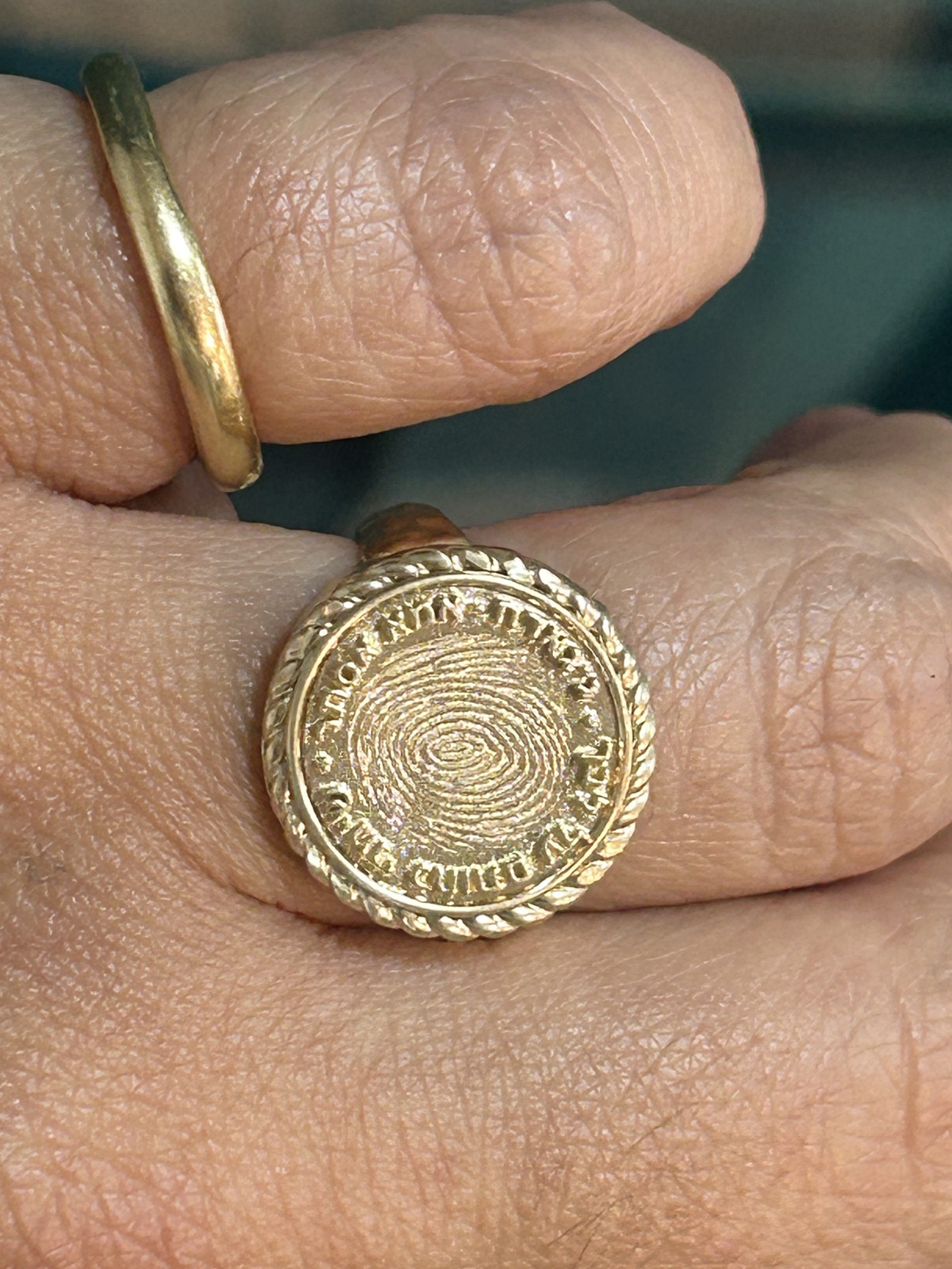 טבעת חותם עגולה וינטאג עם טביעת אצבע, דגם כנרת