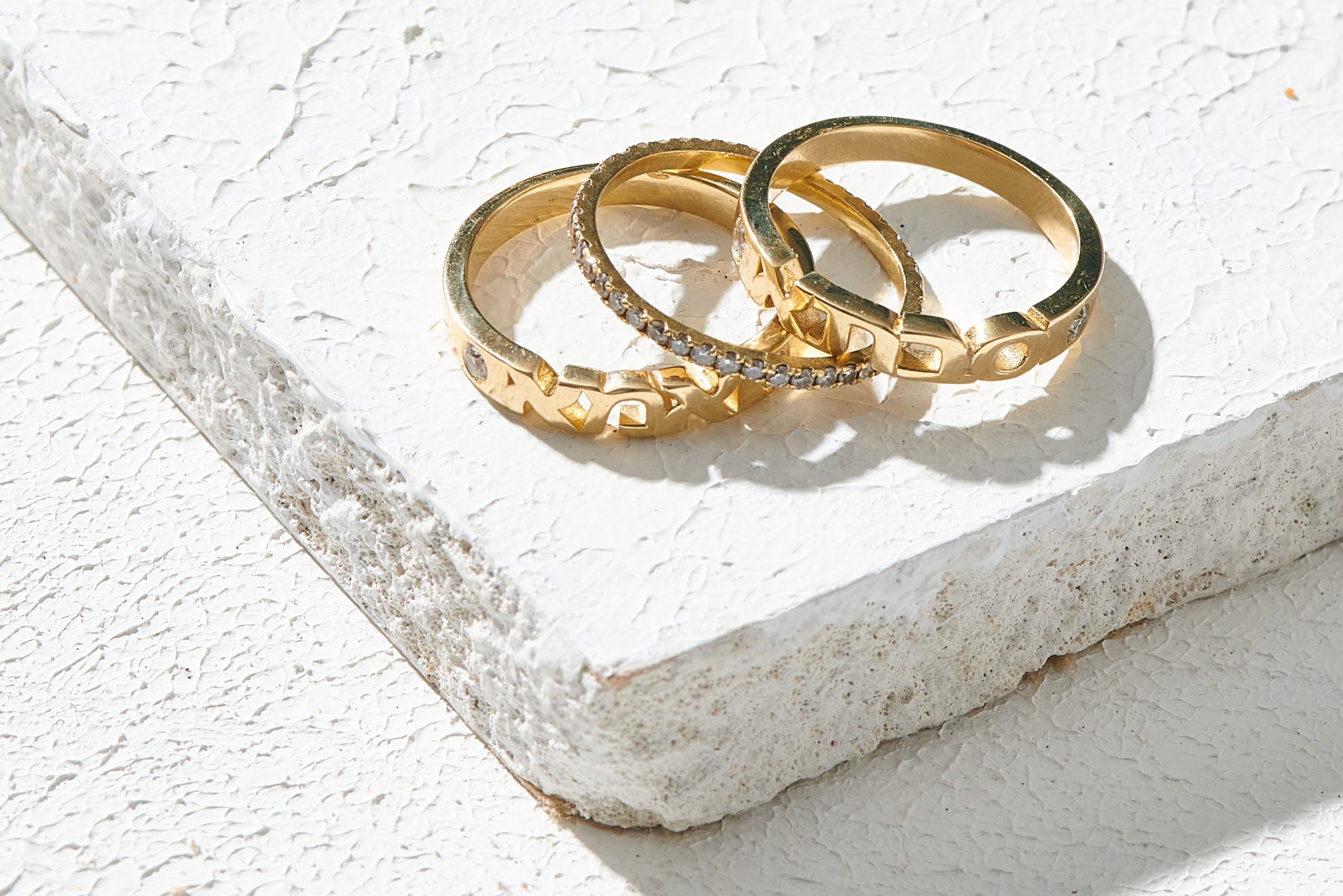 סט שלוש טבעות רחבות- אמא, סבתא, יהלומים