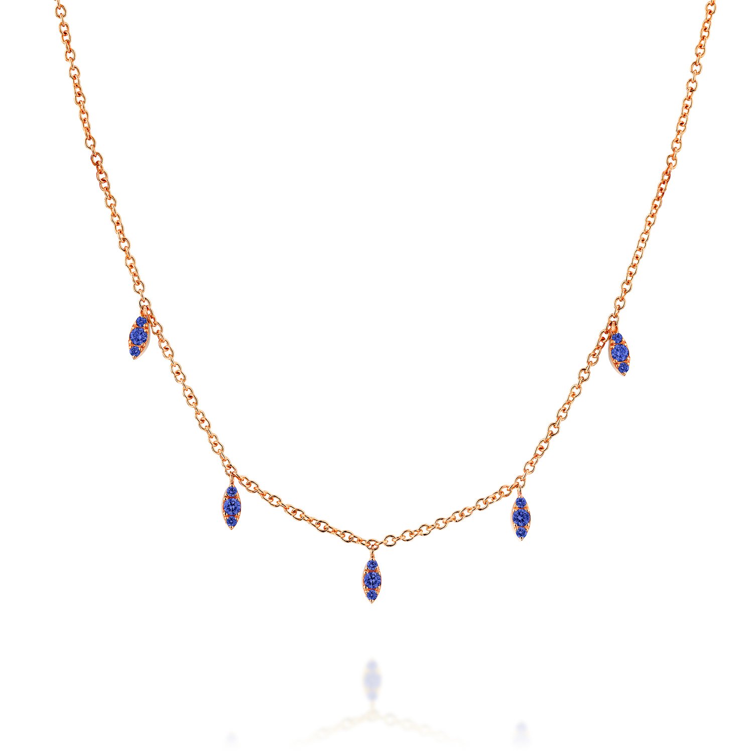 שרשרת נגיעות זהב, 5 תליוני ספיר כחול