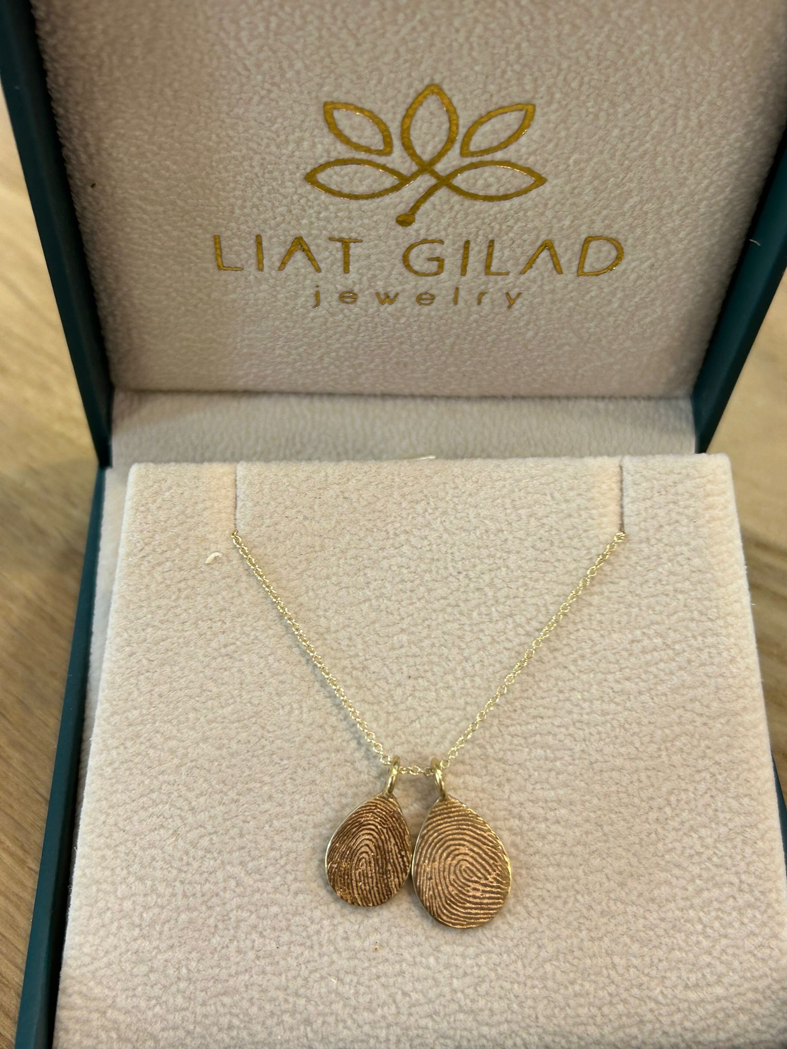 תליוני זהב בצורת טיפה ועליהם חרוטה טביעת האצבע של ילדייך